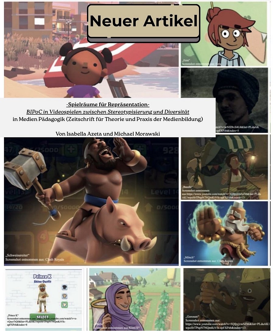 Der Beitrag trägt den Titel Spielräume für Repräsentation. BIPoC in Videospielen zwischen Stereotypisierung und Diversität und setzt sich kritisch mit der Darstellung von Black, Indigenous und People of Color (BIPoC) in digitalen Spielen auseinander. Der Artikel beleuchtet, inwiefern Videospiele sowohl stereotype Repräsentationen reproduzieren als auch Potenziale für vielfältige und differenzierte Darstellungen eröffnen.